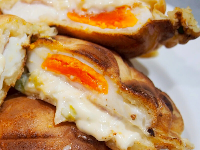 博多初の惣菜まんじゅう。たい焼きの中にベーコンエッグ・納豆・プルコギなど他では食べれない一品です!オーロラドリンクもインスタ映え間違いなし!