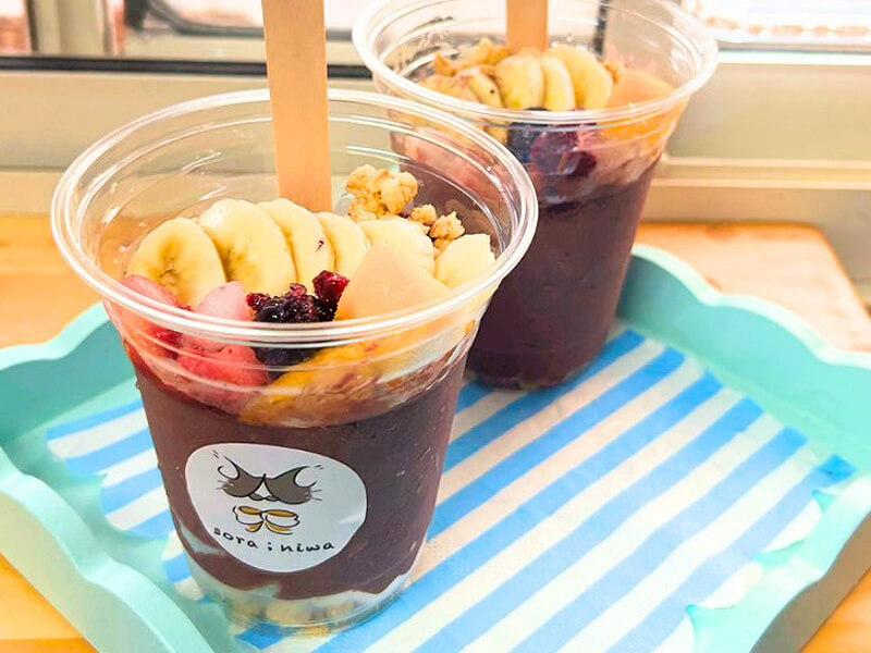 オリジナルジェラートやアイスクリームをカスタムする事ができます。またこだわりの最高濃度のオーガニックアサイーをオリジナルブレンドしたアサイーカップや無着色のりんご飴も一度食べるとくせになります。