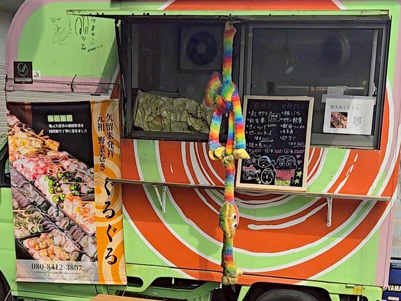 丸〜い具沢山の進化系おむすびとバリッ!サクッ!一度食べたらやみつき間違いなしの新食感唐揚げのキッチンカーの博多まるむすこはくです